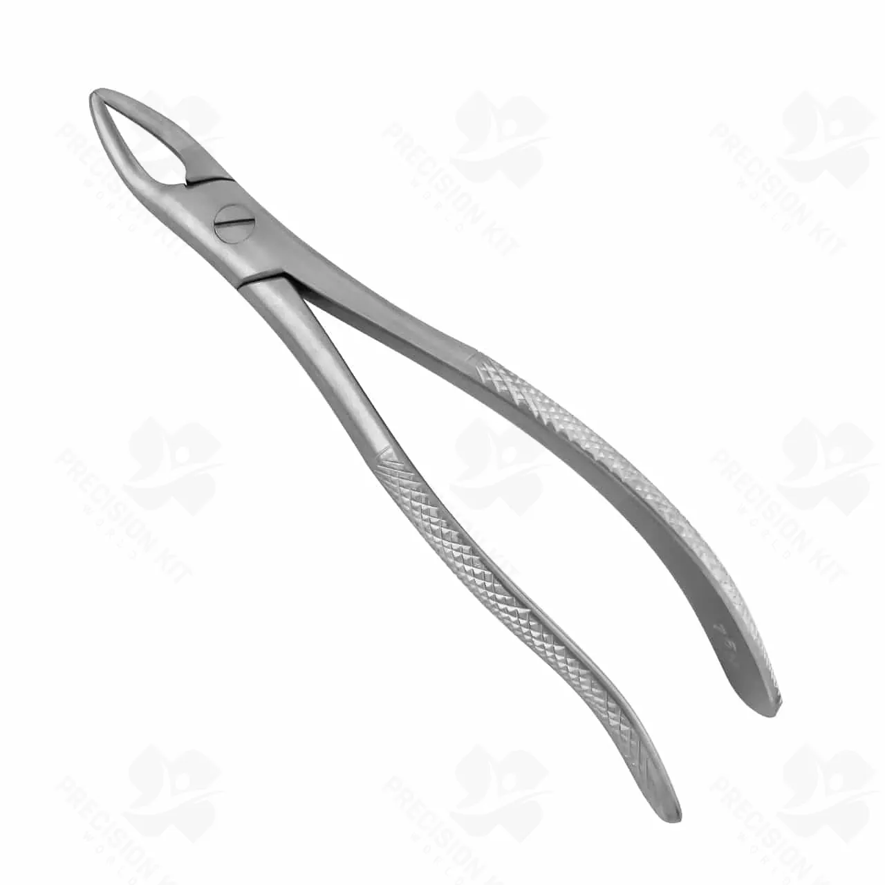 Durable and sturdy, our extraction forceps are the perfect tool to remove teeth from the alveolar bone. English pattern forceps are designed so that the fulcrum is closer to the working end, providing greater leverage, easing extraction. All Extraction Forceps can be serrated unless otherwise indicated.Narrower beaks than #76E forcepsFor upper rootsTextured-grip handle for increased tactile sensationTempered Stainless Steel