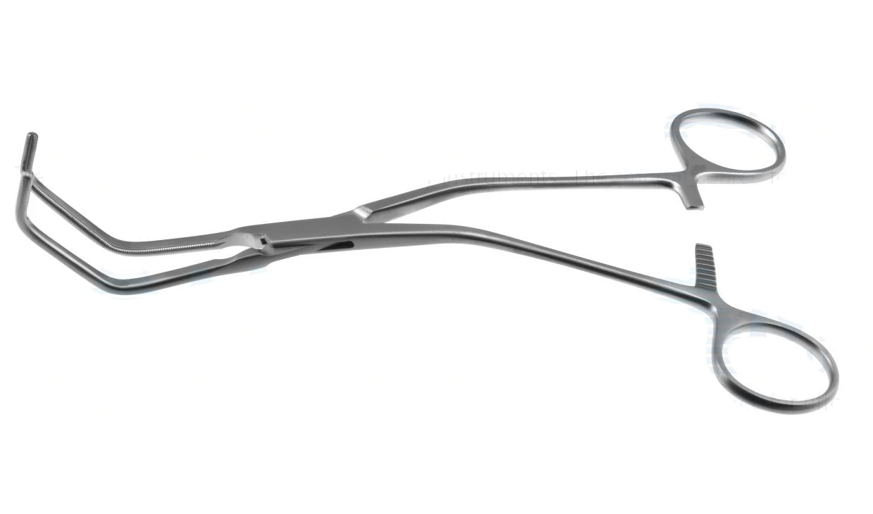 Parsonnet aorta clamp, 10 1/4'',angled shanks, angled, 4.5cm long atraumatic jaws, ring handle