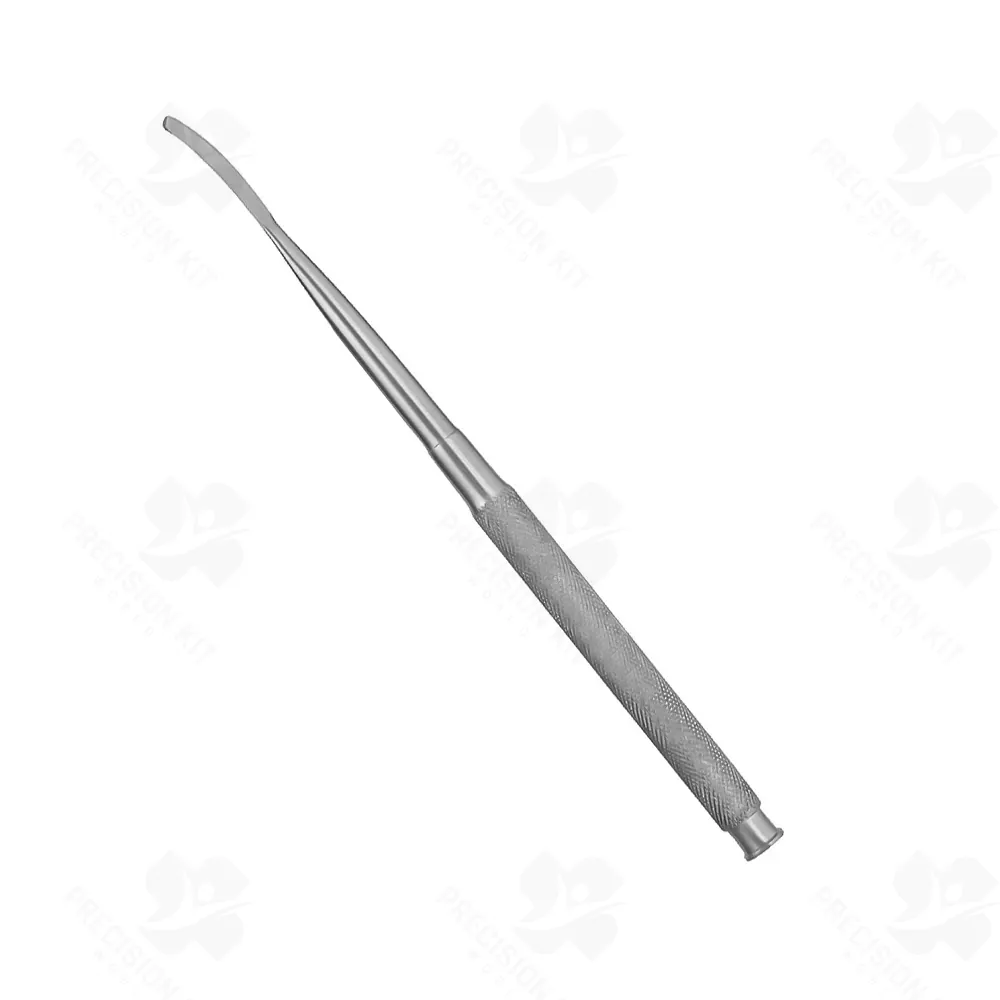 Used to remove or shave bone.4.3mm single-bevelCurved, forward slant, triangular bladeSingle-endedHand crafted from 440A Stainless Steel